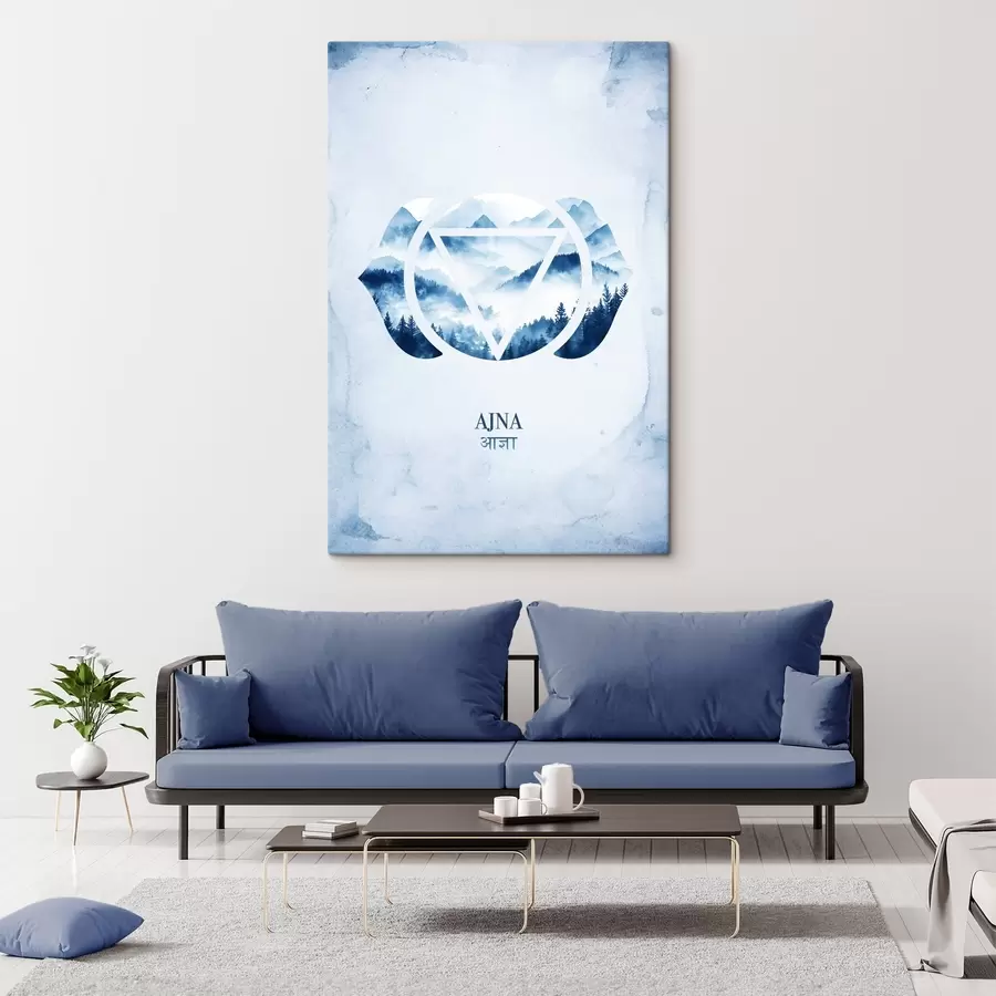 Adžnos čakra, trečiosios akies čakra, ezoterika, meditacija, budizmas, akvarelės stiliaus kalnai