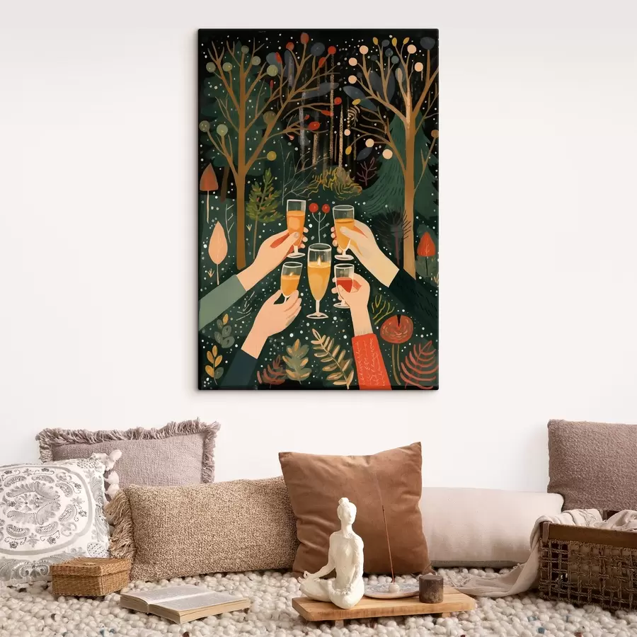 Šventė, šampano taurės, Kalėdos, miškas, abstraktus menas