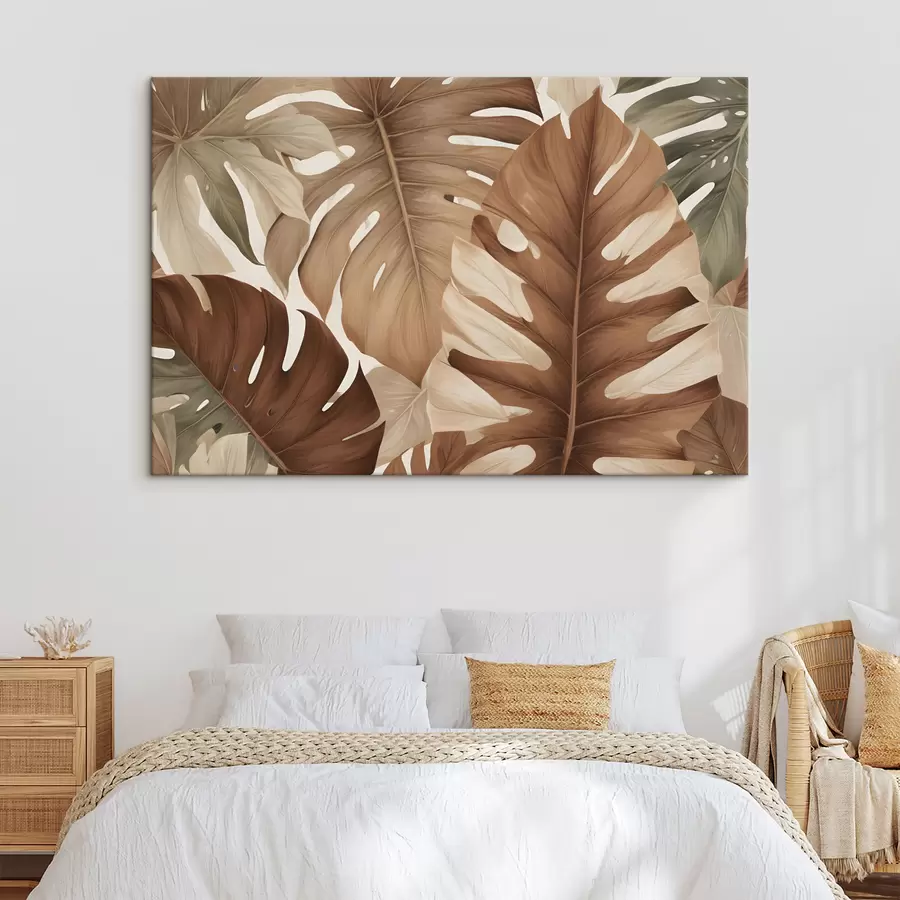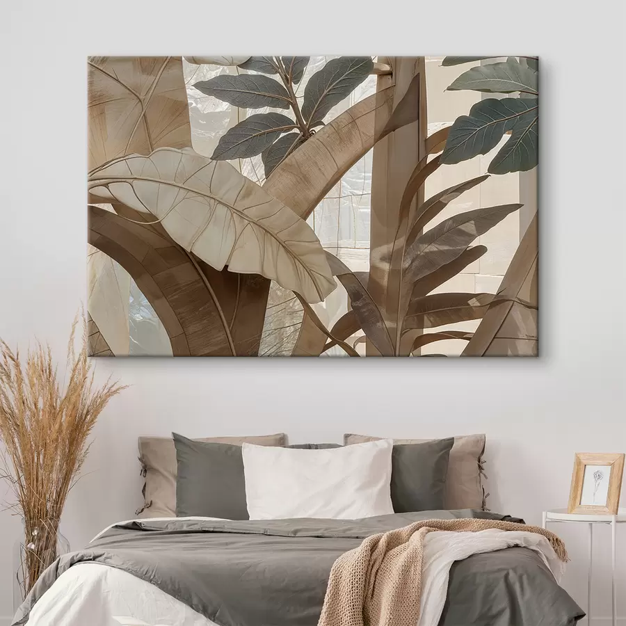 Atogrąžų natūralių, organinės tekstūros rudų ir smėlio atspalvių lapų spauda