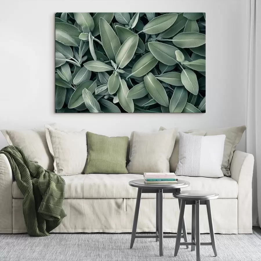 Eukalipto lapai su švelnia, prislopinta spalvų palete, raminančia ir natūralia estetika