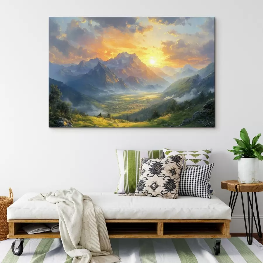 Kaimo kraštovaizdžiai aliejinio stiliaus piešinys, saulėlydis