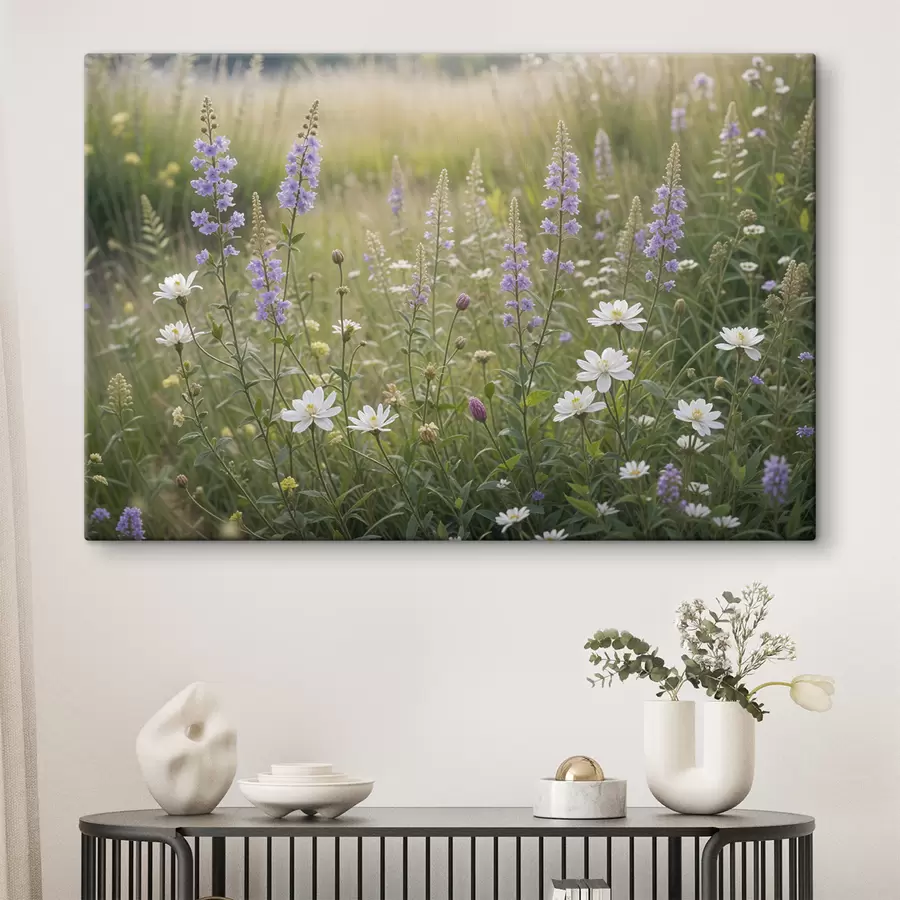 Gėlės pievoje, kaimiškas, akrilo stilius