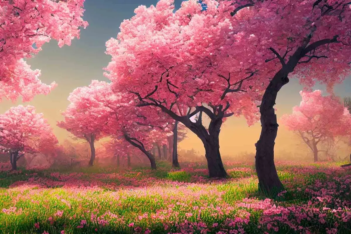 Paveikslas Žydinčios vyšnios švelnioje šviesoje Nr s35703