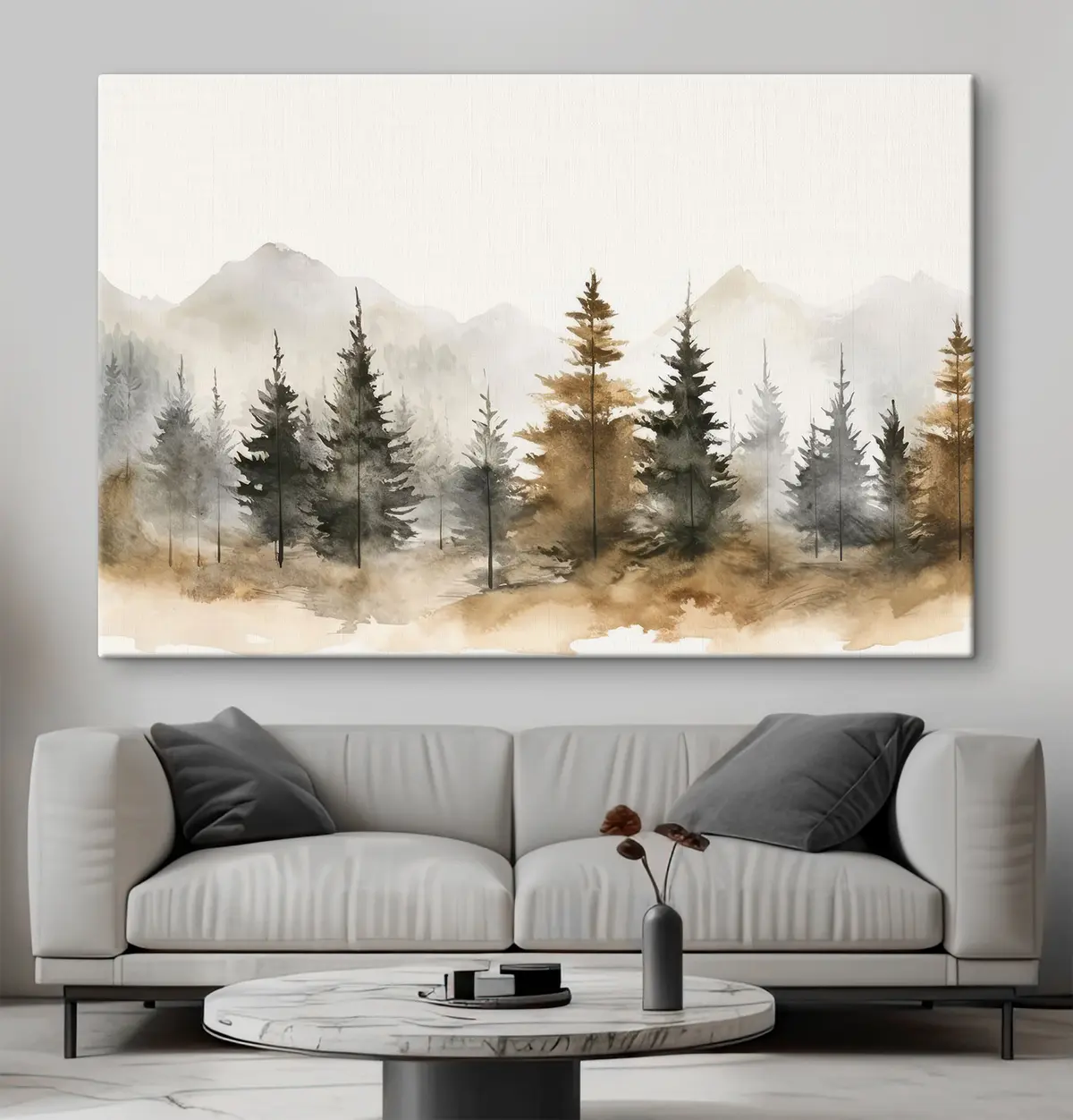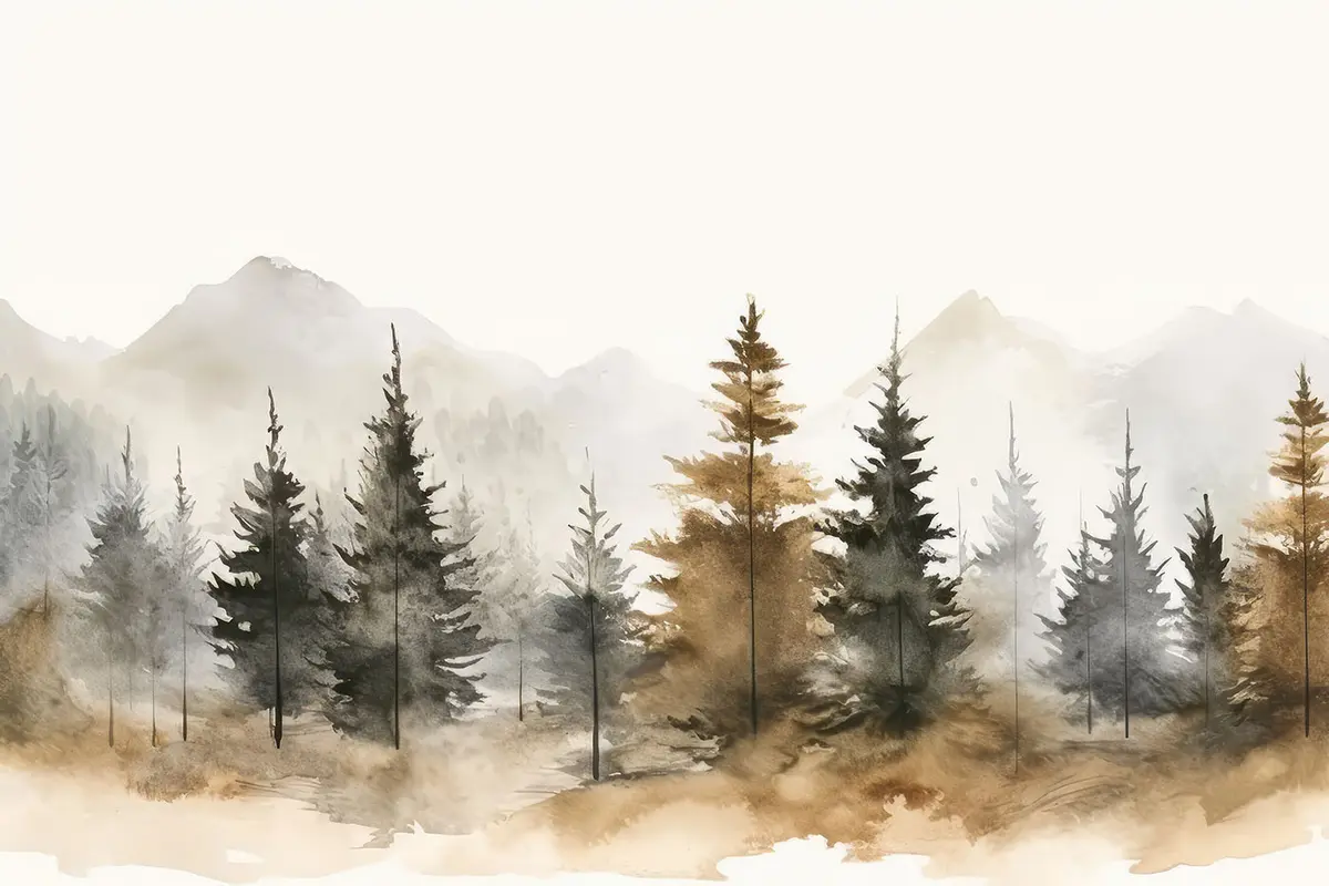 Paveikslas Akvarelinės eglės kalnų fone Nr s36010