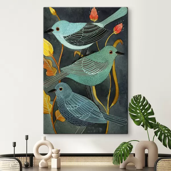Paveikslas Trys paukščiai apsižvalgo Nr s03061