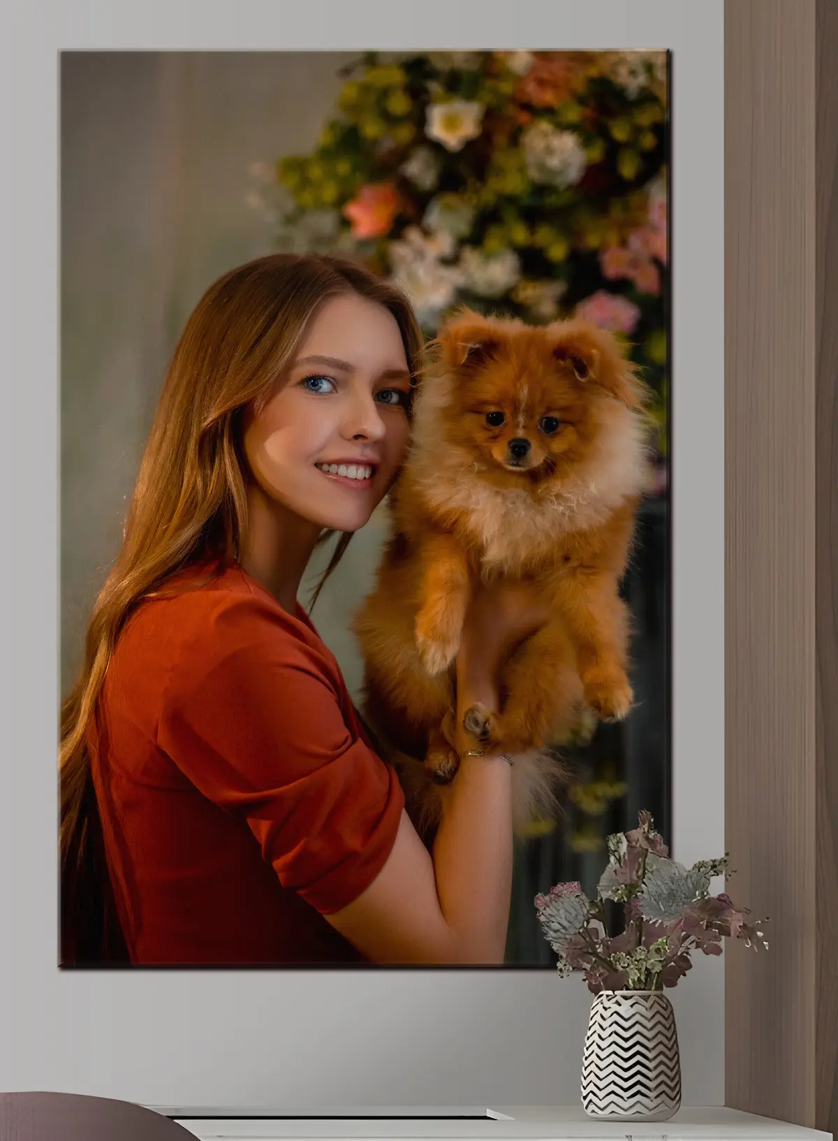 Galima užsakyti trijų rūšių medžiagą: "Economic Canvas" - tanki ir patvari medžiaga skaitmeninei spaudai, identiška dailininko drobės medžiagai, vandeniui atsparus paviršius, tikroviškas detalių atkūrimas, vidutinio grūdėtumo medžiaga. Premium Canvas - tekstūra primena dailininko drobę (susipynę smulkūs siūlai). Minkštas, detalus vaizdo atkūrimas ant matinio paviršiaus. Eco-Premium - aukštos kokybės 100 % medvilninis audinys. Dėl natūralių medvilnės pluoštų medžiaga yra patvari ir atspari nusidėvėjimui. Puikus spalvų atkūrimas ir detalumas.