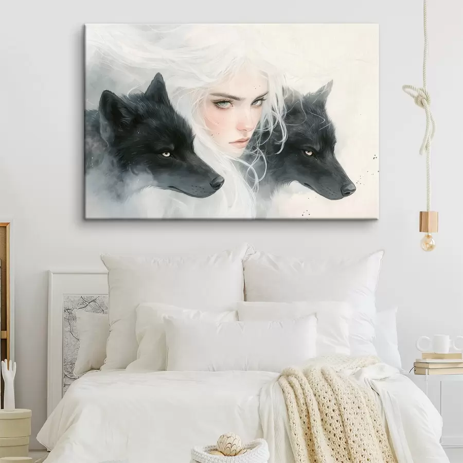 Moters portretas, laukiniai vilkai, anime, akrilas