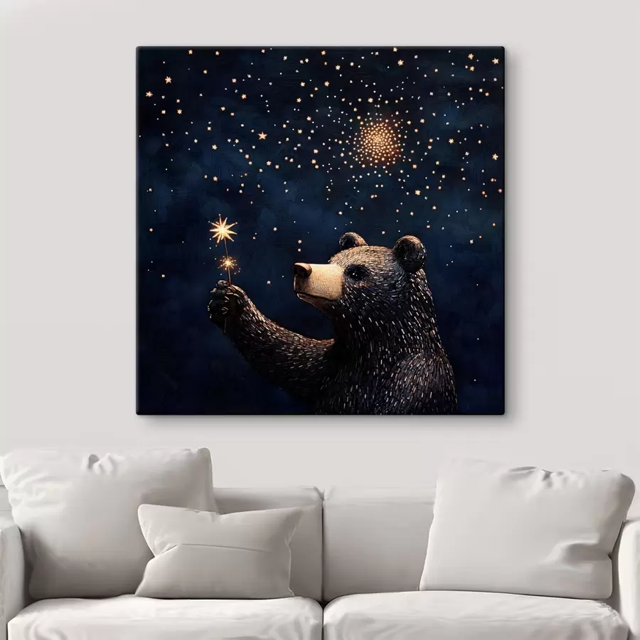 Pelėdos žvilgsnis naktį su Van Gogo stiliaus dangumi