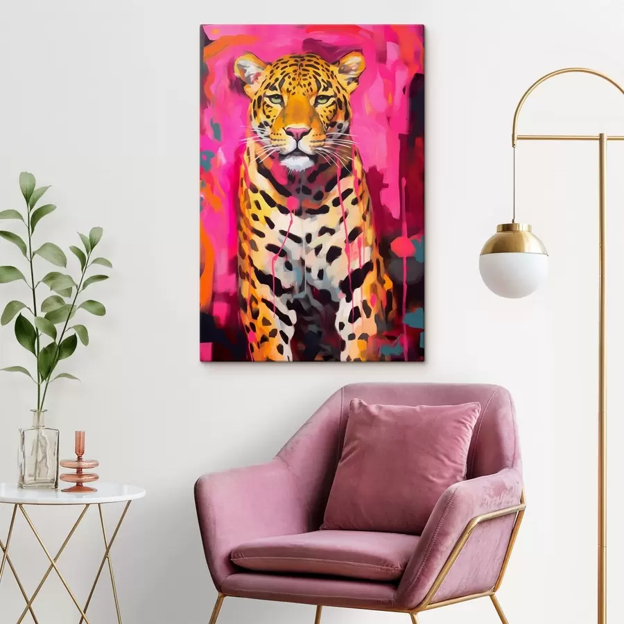 Nuožmios žaliaakės leopardo portretas stambiu planu ryškiu turkiu ir juodai dėmėtu kailiu