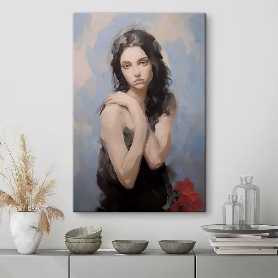 Raudonplaukė mergina suknelės imitacijos tapyba