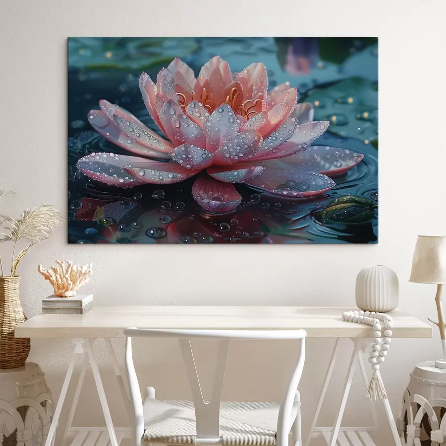 Lotoso gėlė su rasos lašais