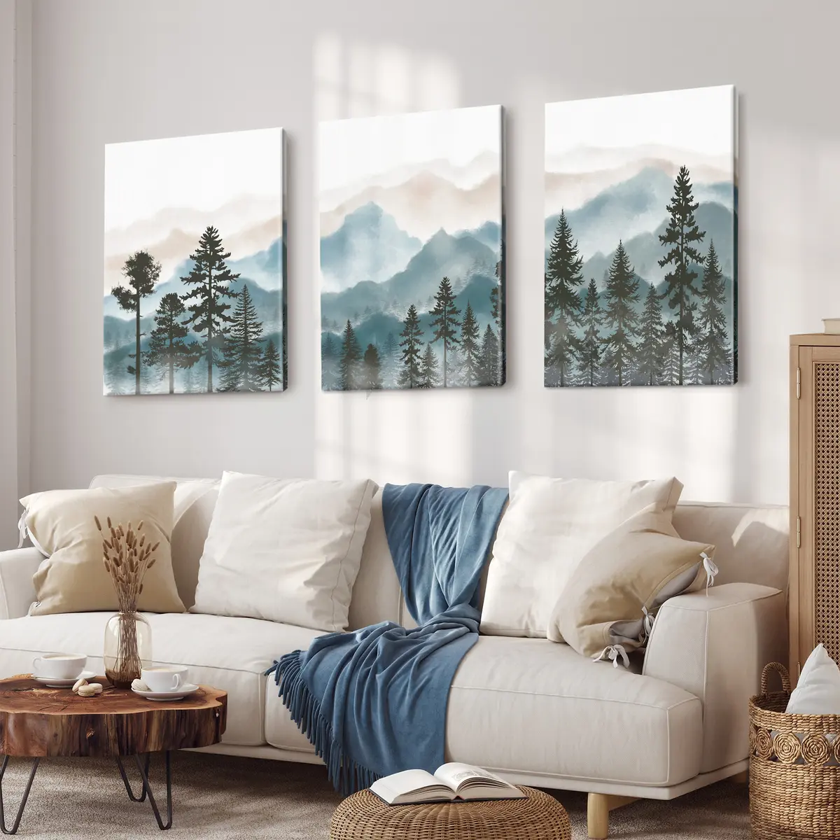 Paveikslas Ramūs kalnai ir medžių siluetai Nr m00244