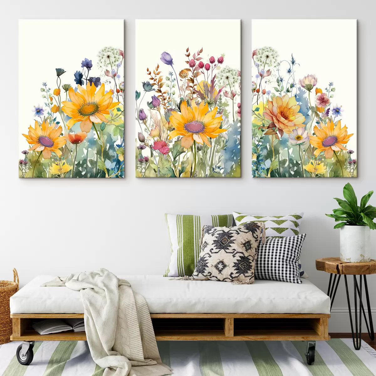 Paveikslas Spalvingos vasaros akvarelės lauko gėlės Nr m00333