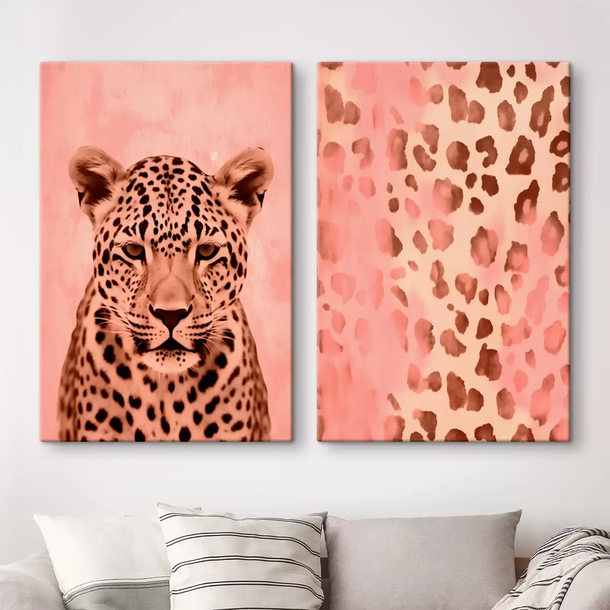 Paveikslas Gepardo portretas, abstraktus raštas su leopardo atspaudu rausvame fone Nr m00402