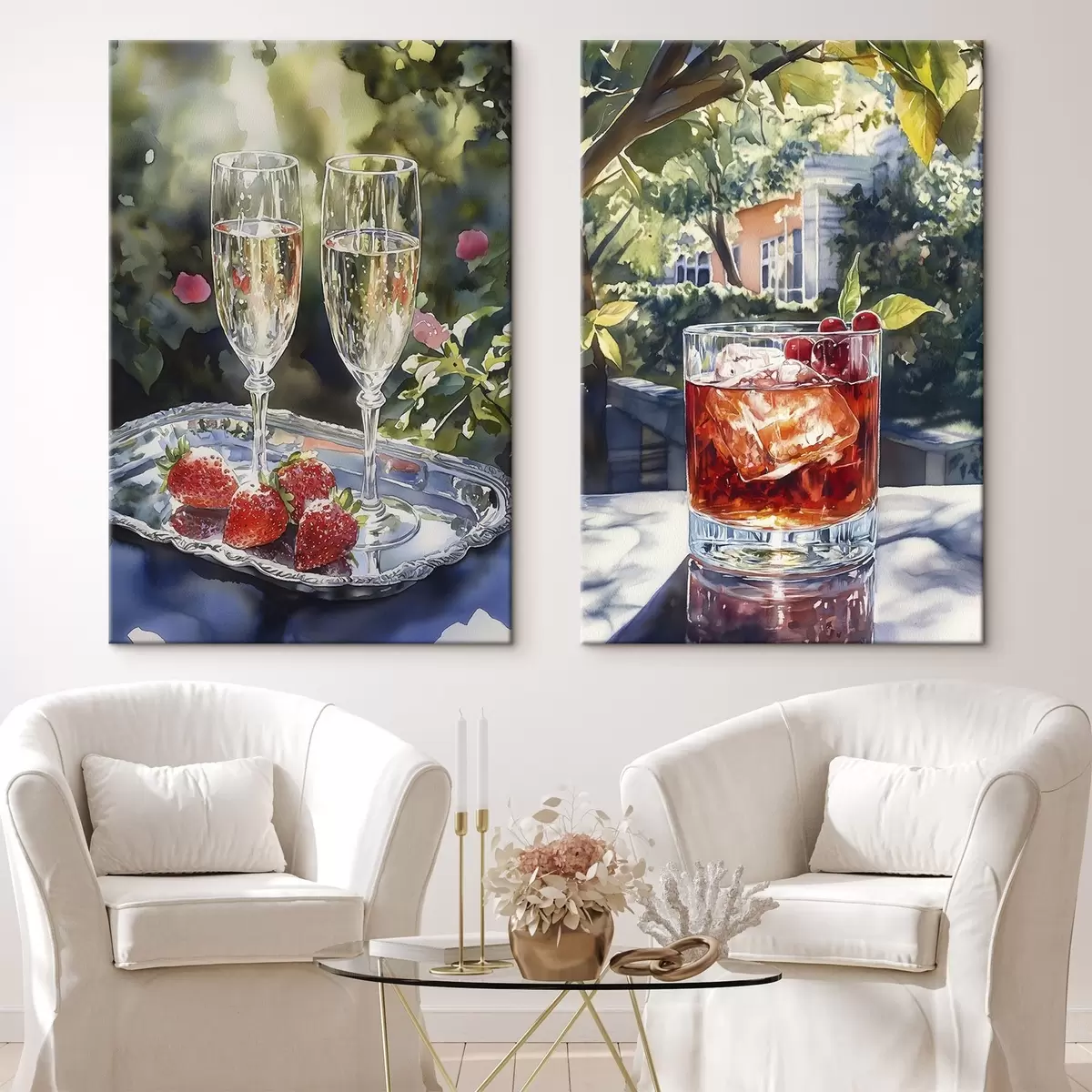 Paveikslas Skanūs kokteiliai su uogomis, akvarelės stilius, estetika, vasaros gamta Nr m00415