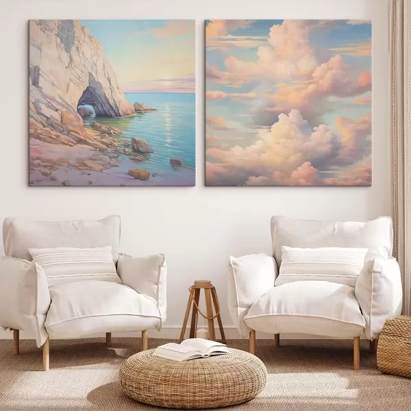 Paveikslas Bangos ant uolėto kranto ir dangus su debesimis Nr m00487