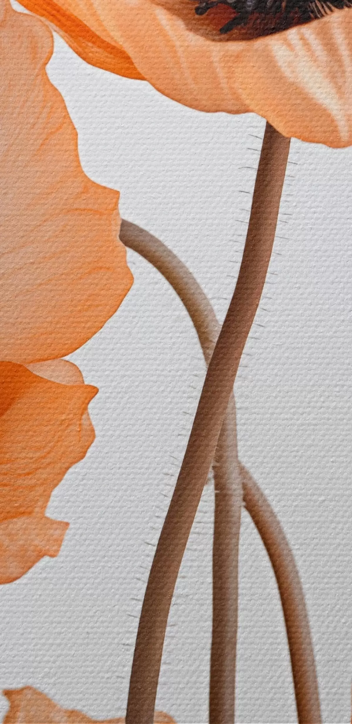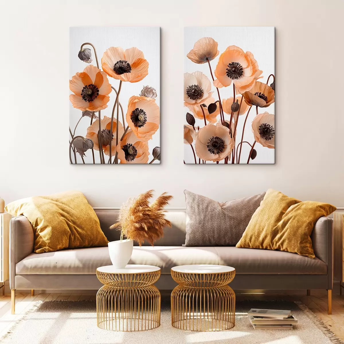 Paveikslas Oranžinės aguonos, džiovintos gėlės šviesiame fone, švelnus apšvietimas, subtilūs žiedlapiai, gėlių kompozicija Nr m00518