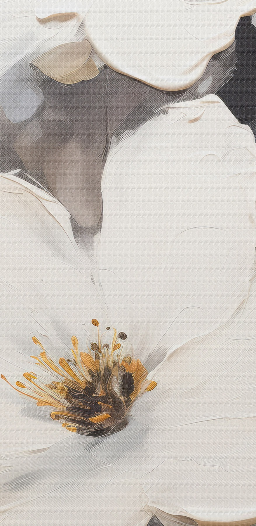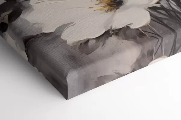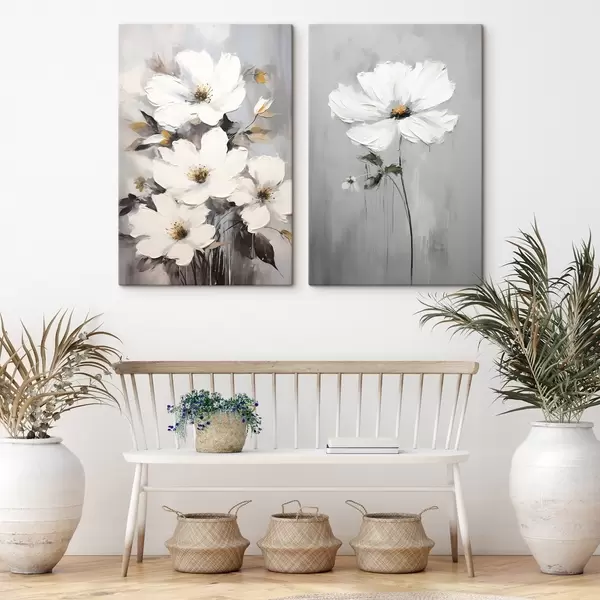 Paveikslas Meninė kompozicija su baltomis gėlėmis ir tekstūriniu paviršiumi minimalistiniu stiliumi Nr m00574