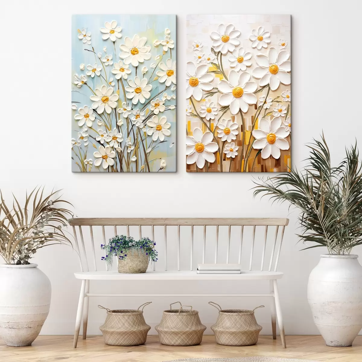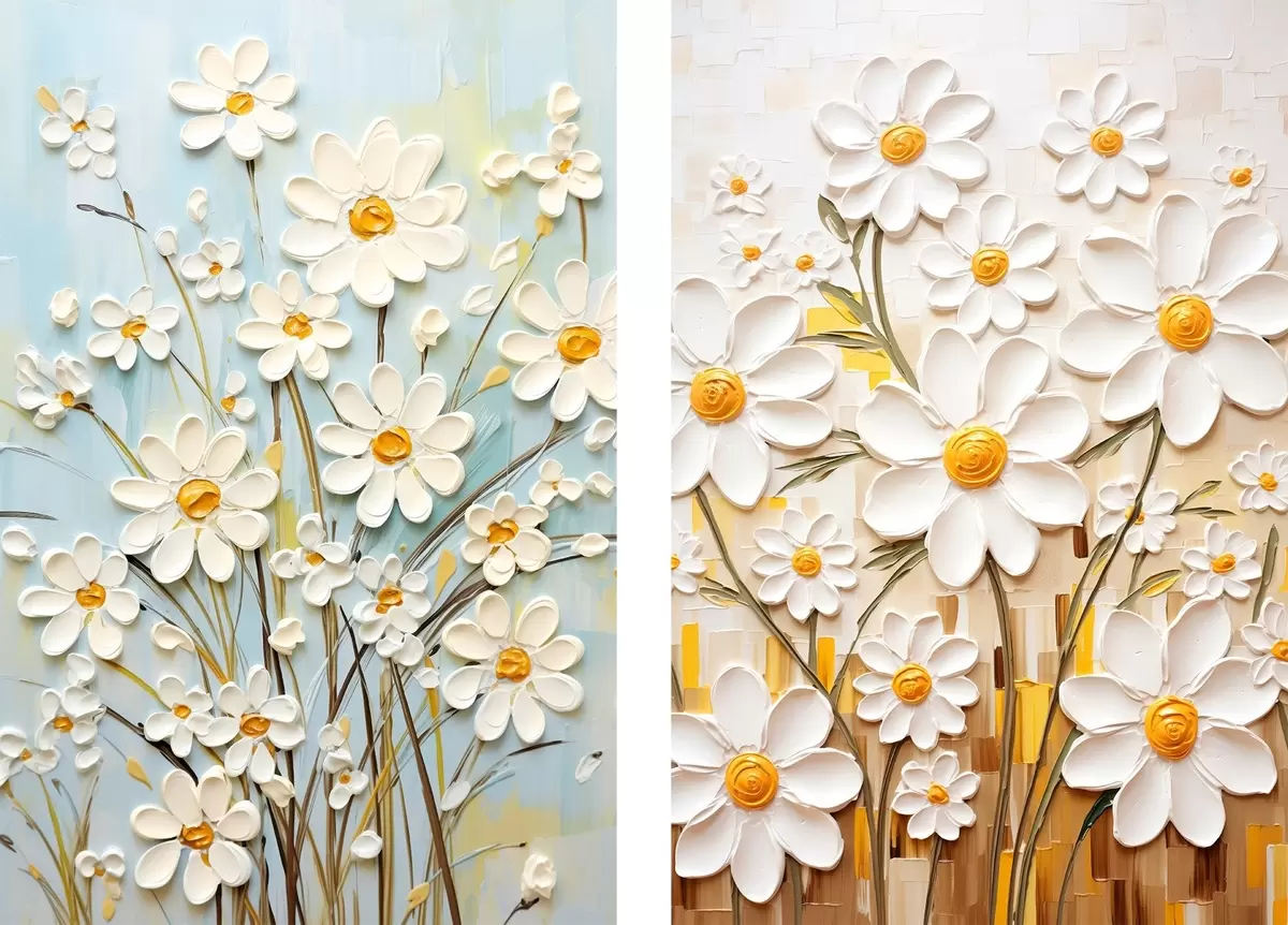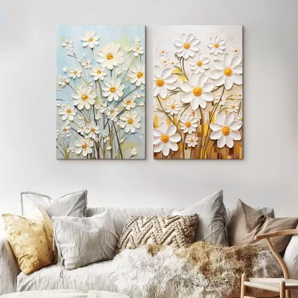 Paveikslas Saulėtos gėlės: meno duetas su tūriniais margučiais ir geltonais akcentais Nr m00580