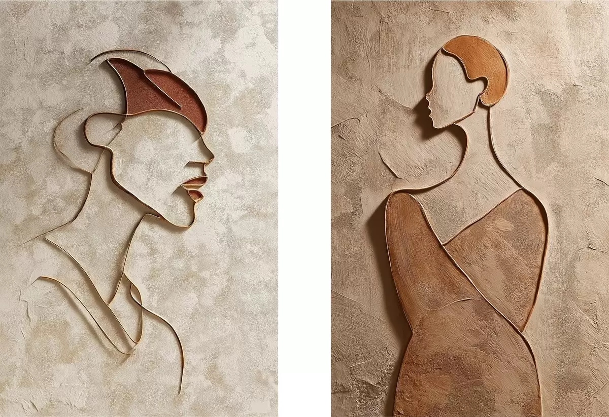 Paveikslas Minimalistinio stiliaus reljefiniai žmonių siluetai Nr m00596