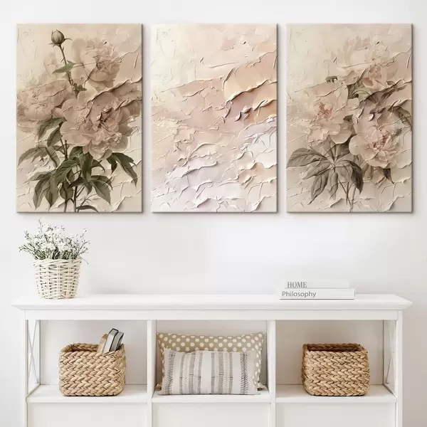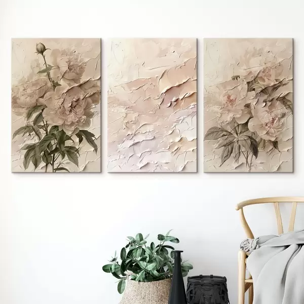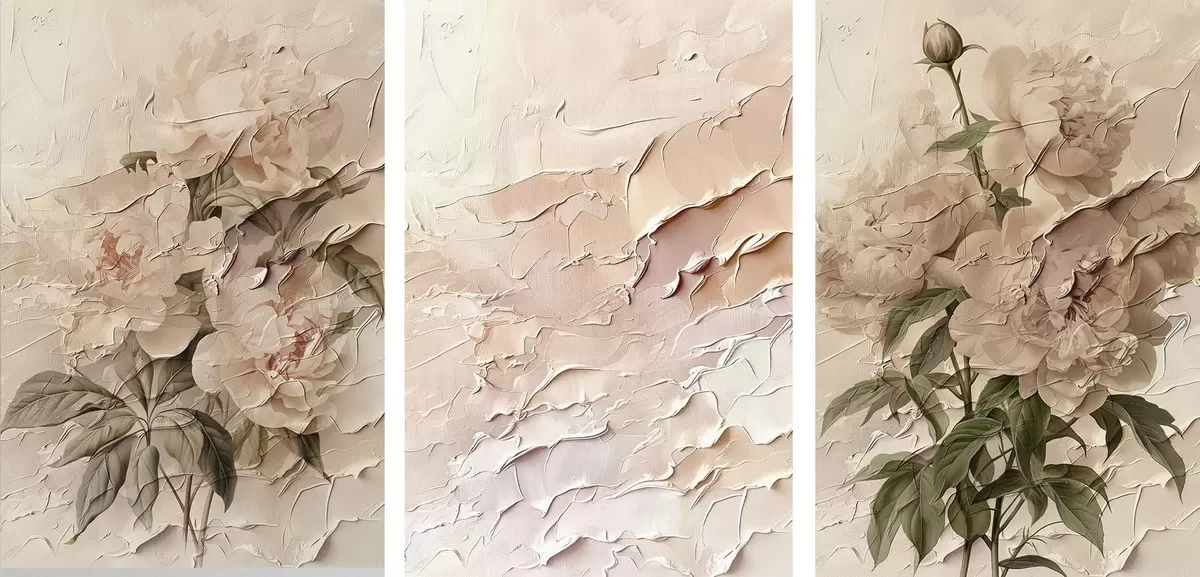 Paveikslas Bijūnų puokštė ir dažų potėpio efektas Nr m00616