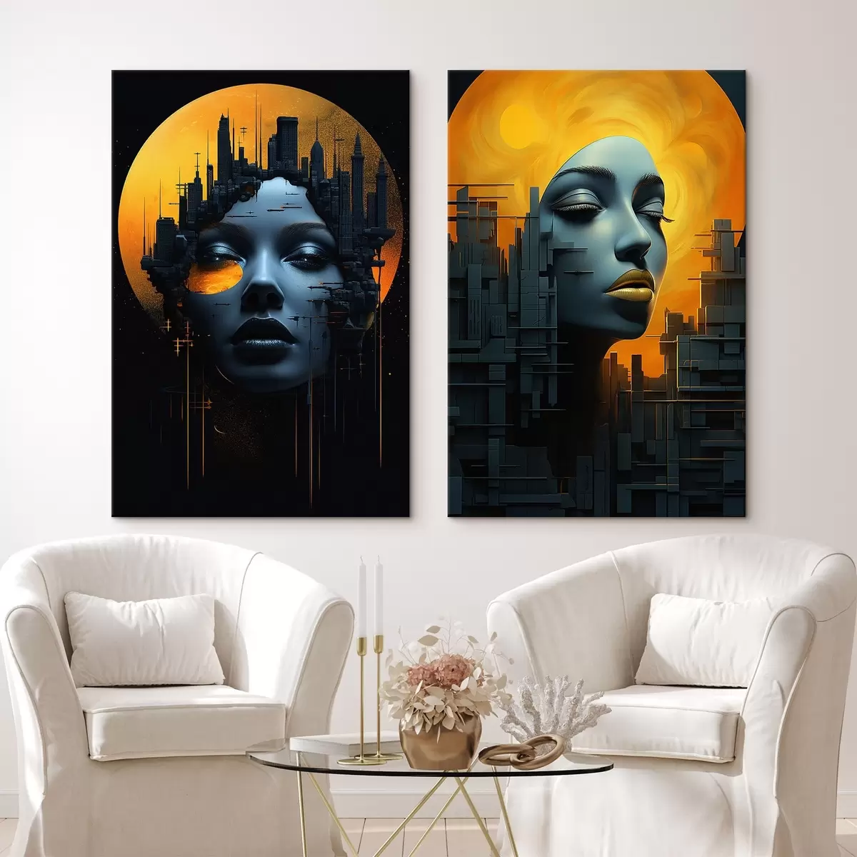 Paveikslas Mergaitės portretas abstrakčiame miesto fone Nr m00618