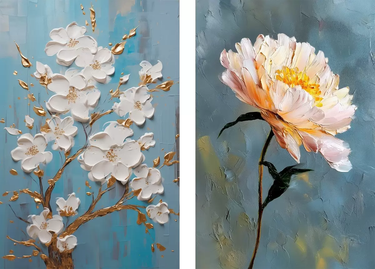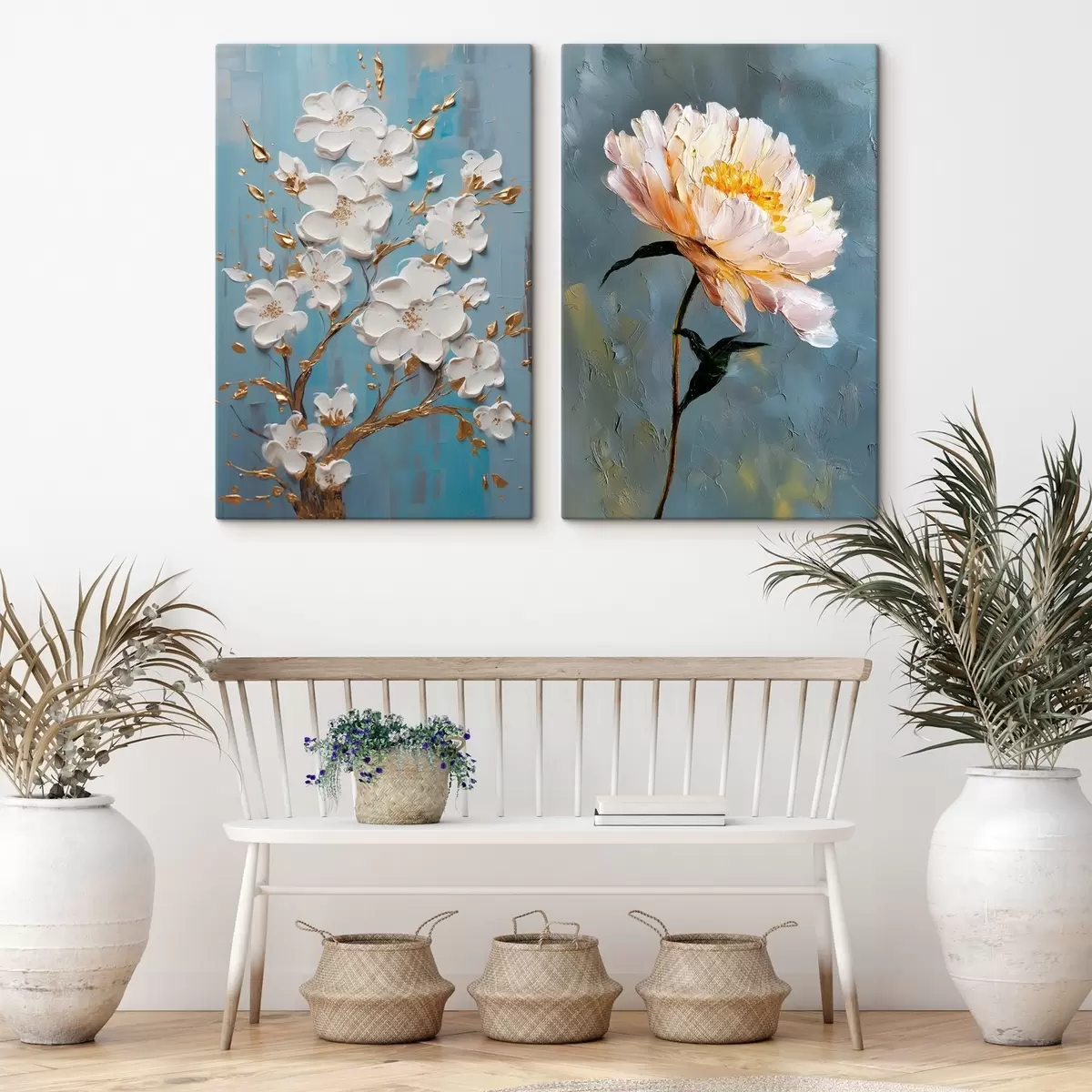 Paveikslas Žydinti šaka ir bijūnas: reljefinė kompozicija Nr m00637
