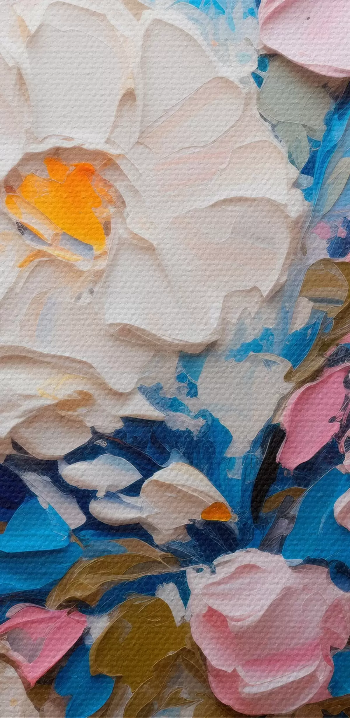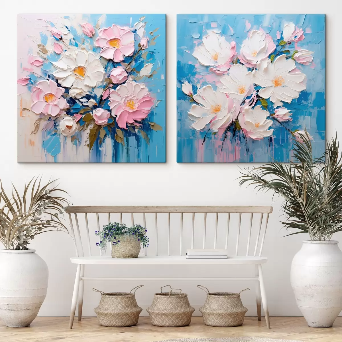 Paveikslas Abstrakčios gėlės: rožinių ir mėlynų tonų dekoratyvinė kompozicija Nr m00643