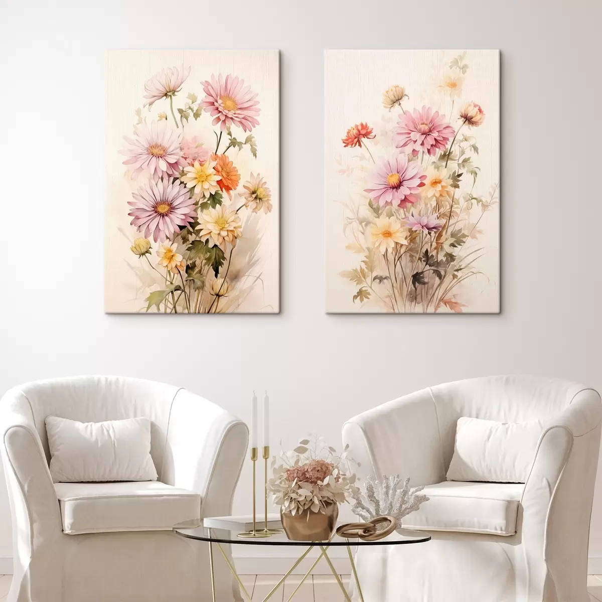 Paveikslas Spalvingų gėlių puokštė, švelnus akvarelės stilius, šviesiame fone, botaninė iliustracija Nr m00649