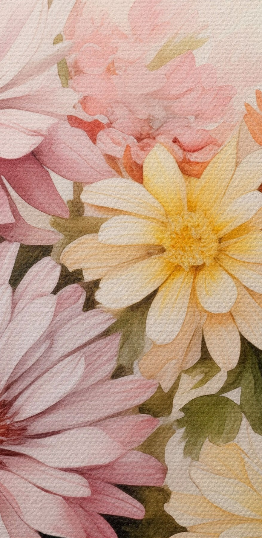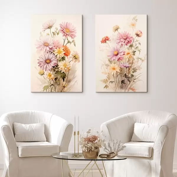 Paveikslėlis Spalvingų gėlių puokštė, švelnus akvarelės stilius, šviesiame fone, botaninė iliustracija m00649