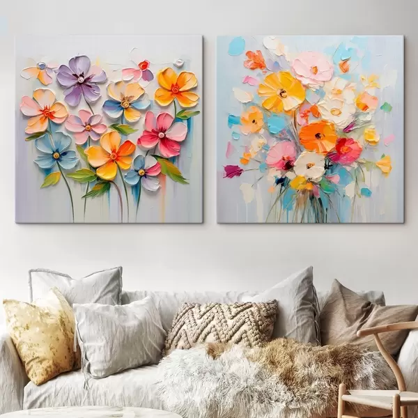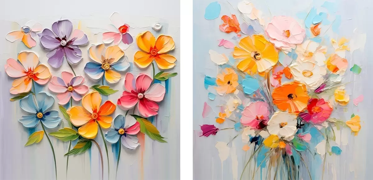 Paveikslas Abstrakčios ryškių gėlių kompozicijos, atliktos impasto technika Nr m00662