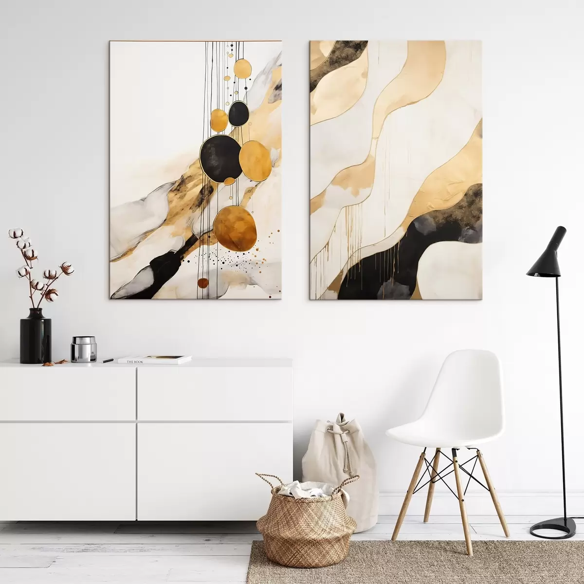 Paveikslas Abstrakti kompozicija su juodais ir oranžiniais apskritimais Nr m00684