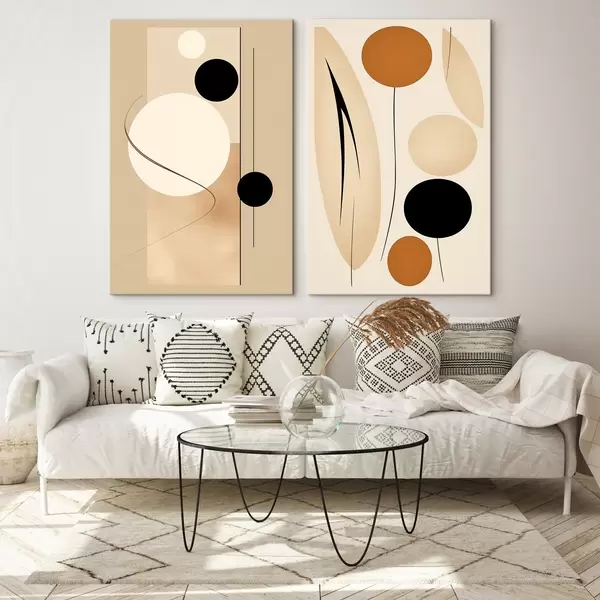 Paveikslas Minimalistiniai smėlio ir juodos spalvų geometriniai apskritimai Nr m00685