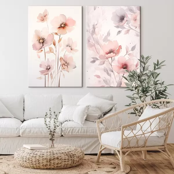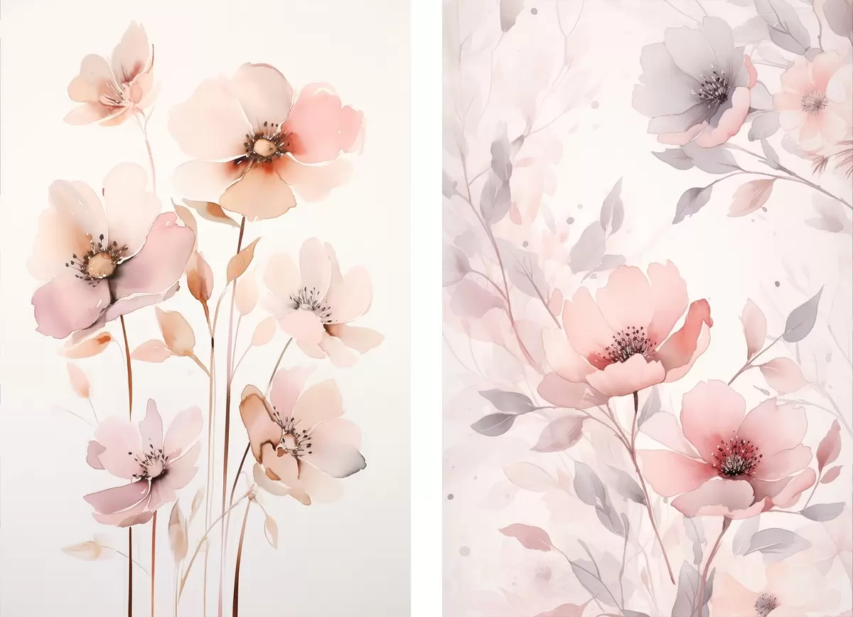 Paveikslas Akvarelinės rožinės gėlės ant plonų stiebų Nr m00690