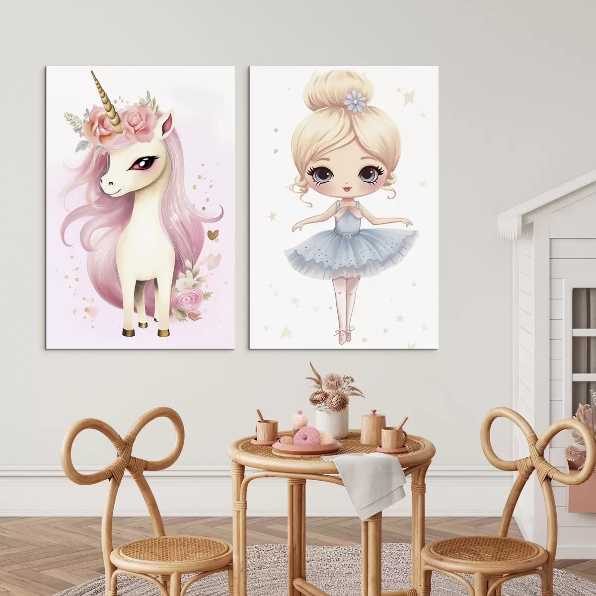 Paveikslas Balerina su mėlyna suknele ir vienaragis su rožine griva Nr m00692
