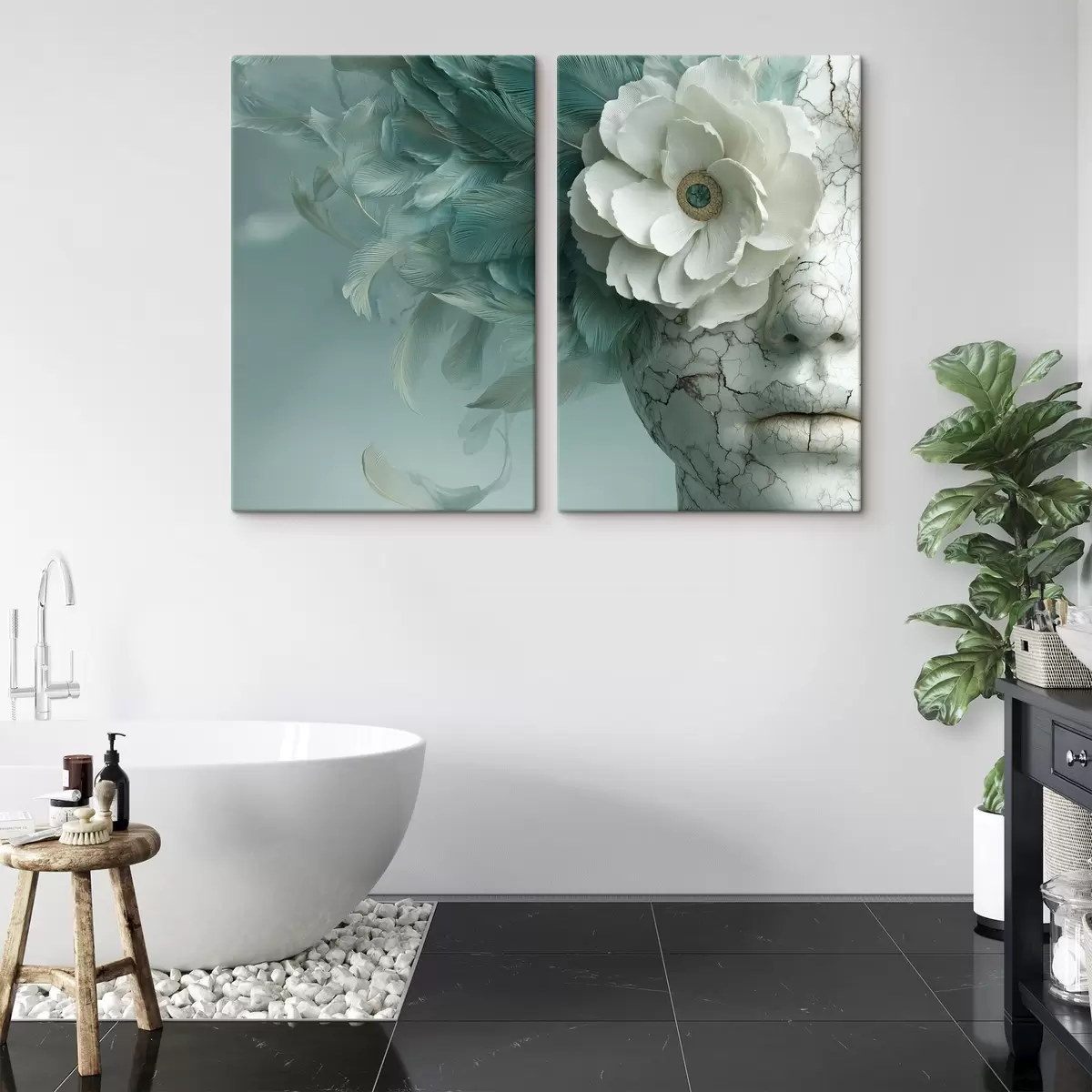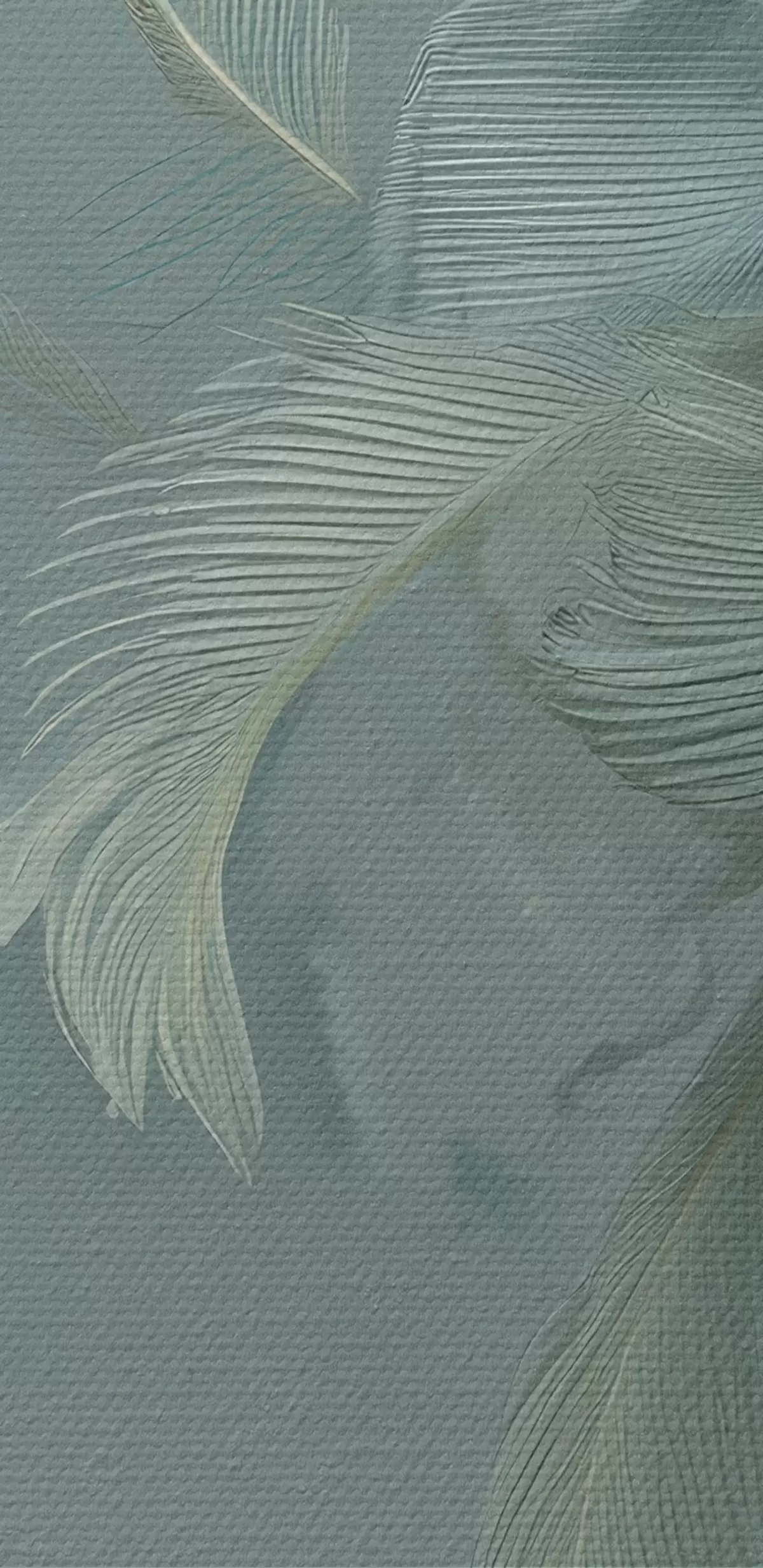Paveikslas mergaitės veidas iš marmuro su gėle ir plunksnomis Nr m00699