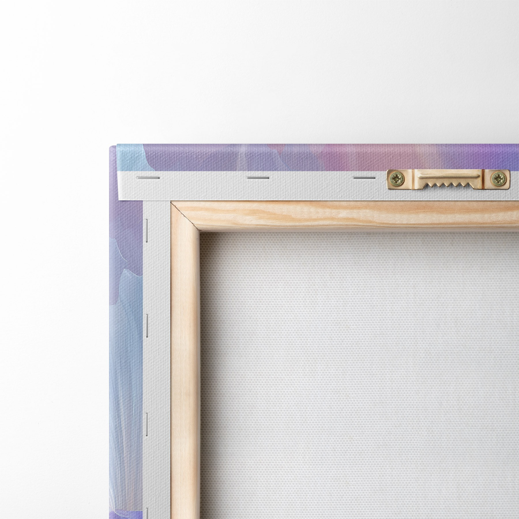 Paveikslas subtilus fantazijos gėlių su žiedlapiais violetinės, mėlynos ir rožinės spalvos atspalviais. Nr m00700