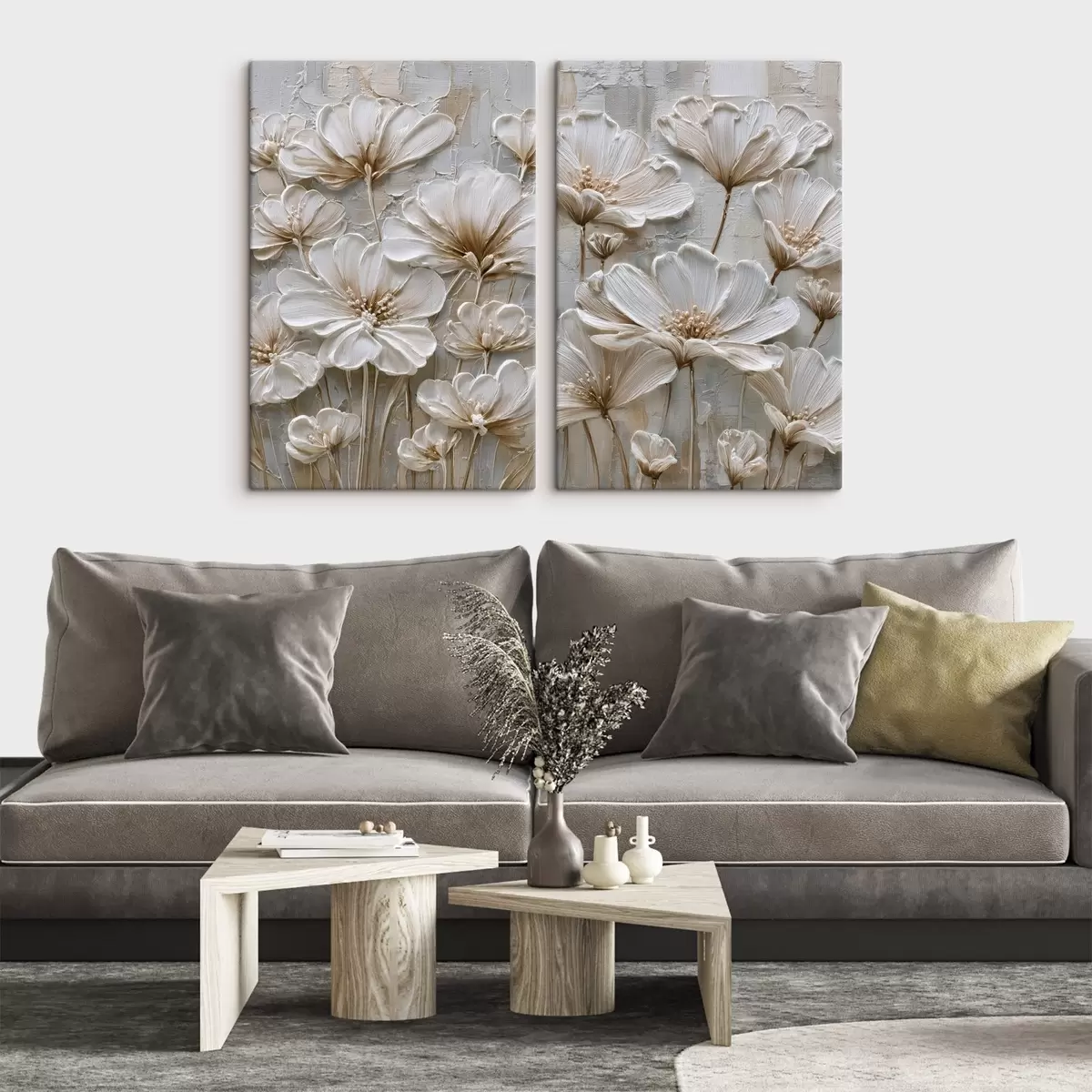 Paveikslas kreminės gėlės su imituotu impasto stiliumi Nr m00701