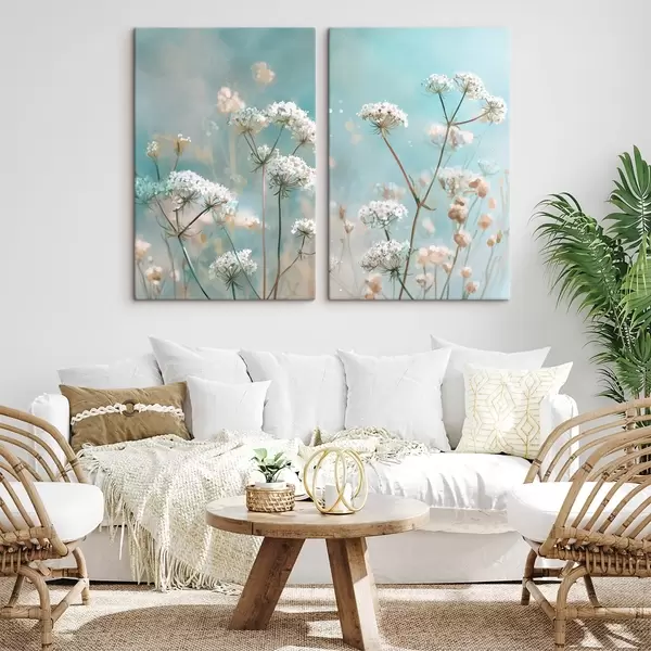 Paveikslas Mėlyname fone akvarelės stiliaus karalienės Anos nėrinių gėlės Nr m00705