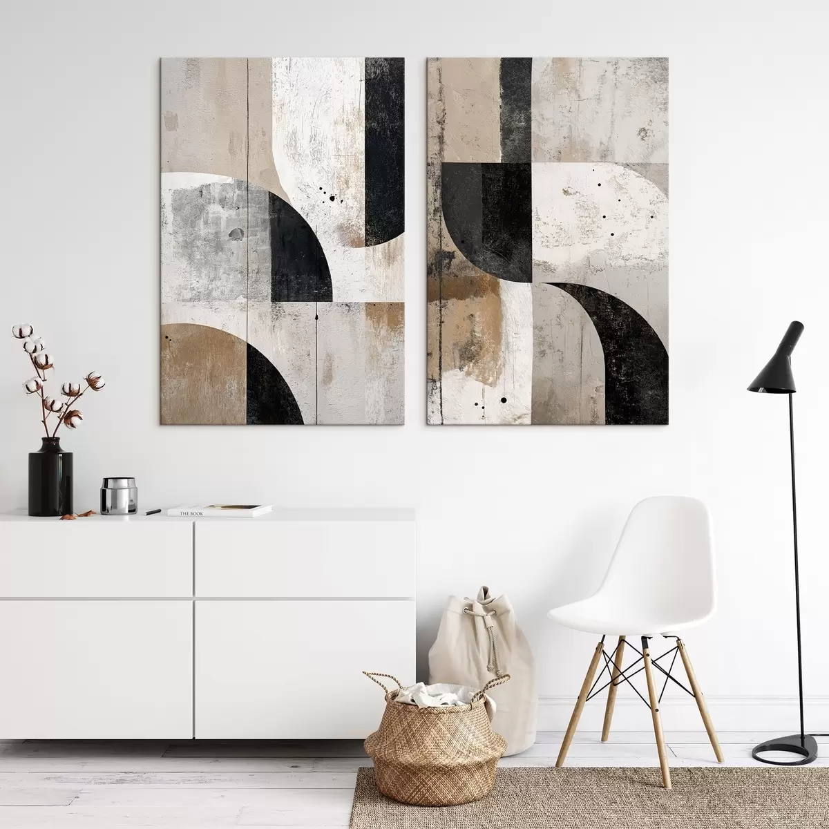 Paveikslas Geometrinės formos smėlio ir juodos spalvų atspalviais Nr m00750