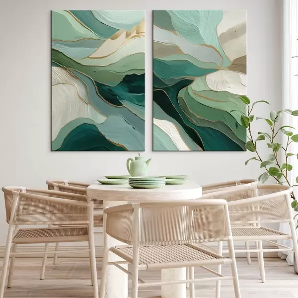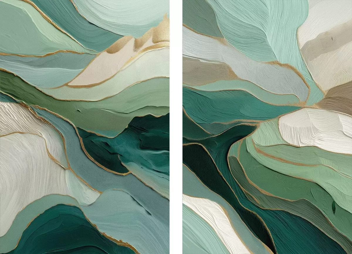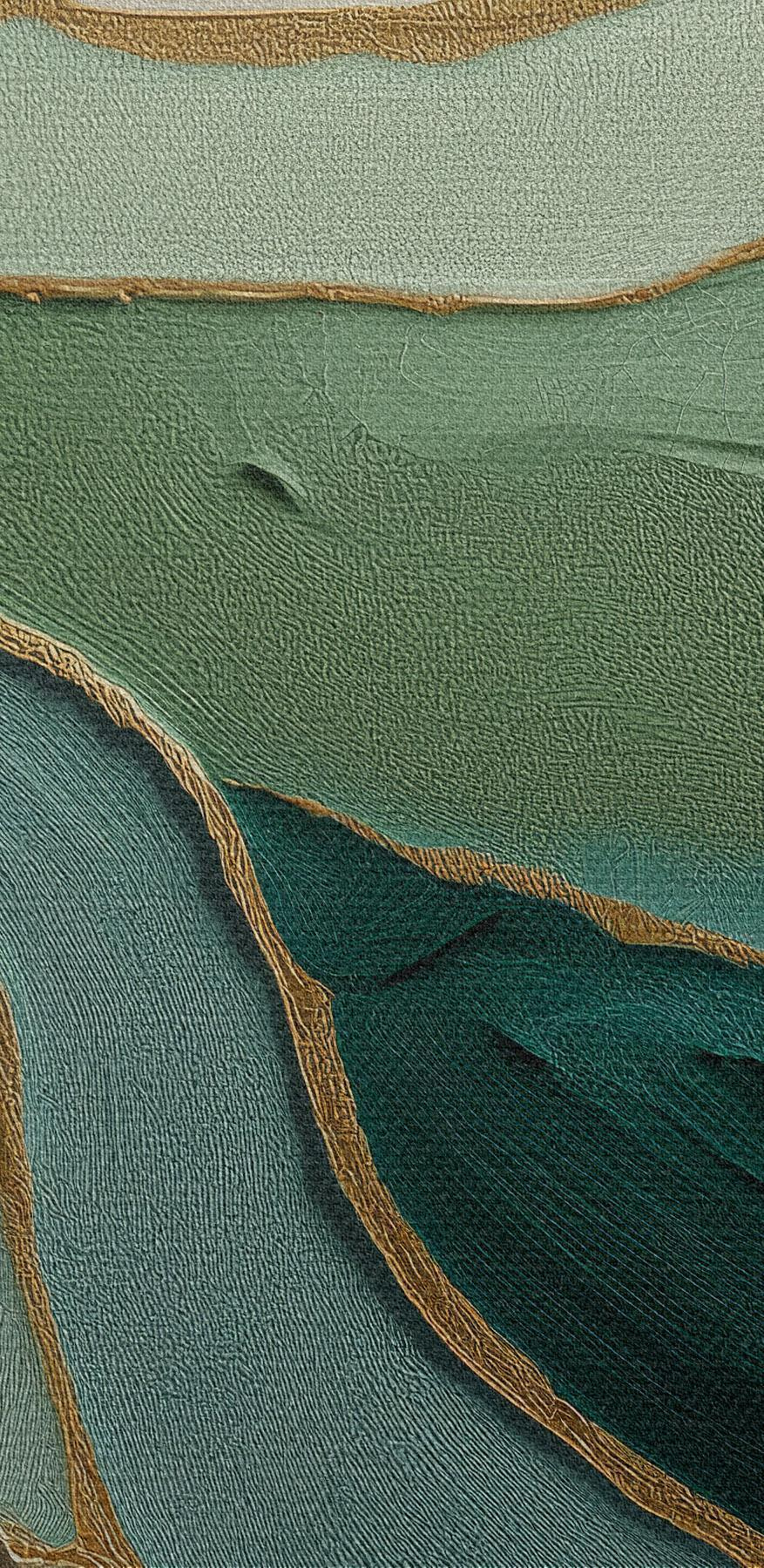 Paveikslas Smaragdo spalvos sluoksniuota abstrakcija su geltonu kontūru Nr m00766