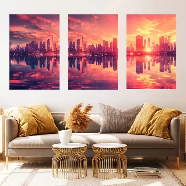 Paveikslas Romantiškas saulėlydis su moderniu miestu fone Nr m00784