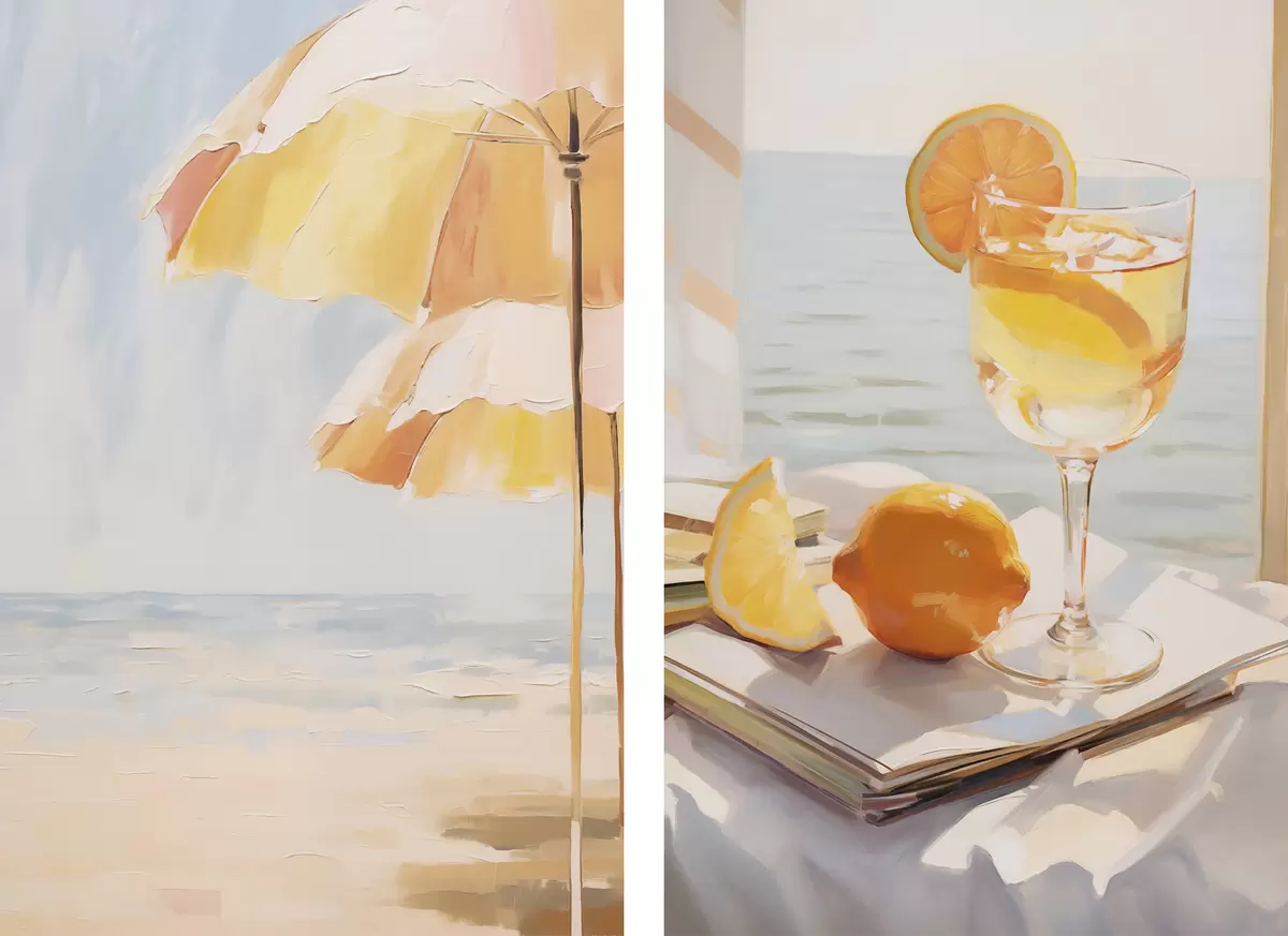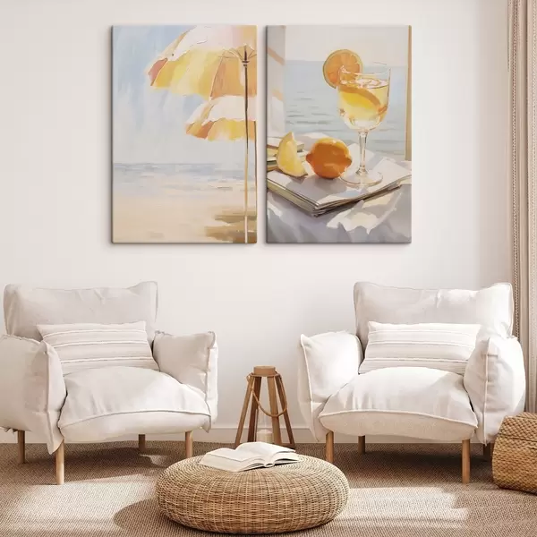 Paveikslas Paplūdimio peizažas ir kokteilis stiklinėje Nr m00793