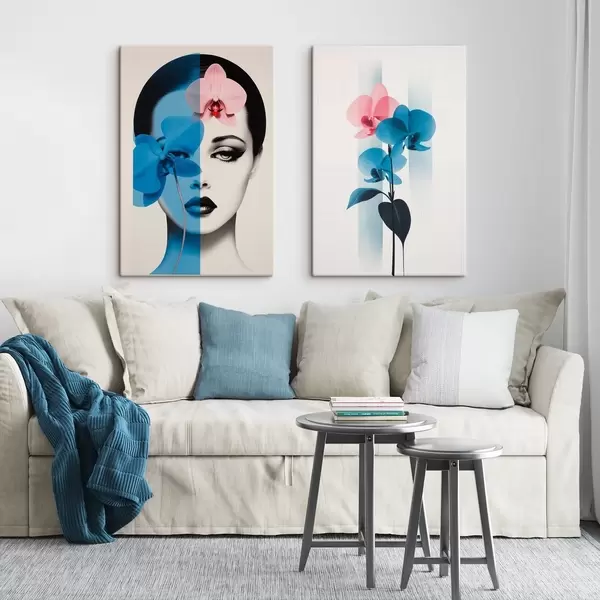Paveikslas Abstraktaus meno moters portretas su orchidėjomis Nr m00818
