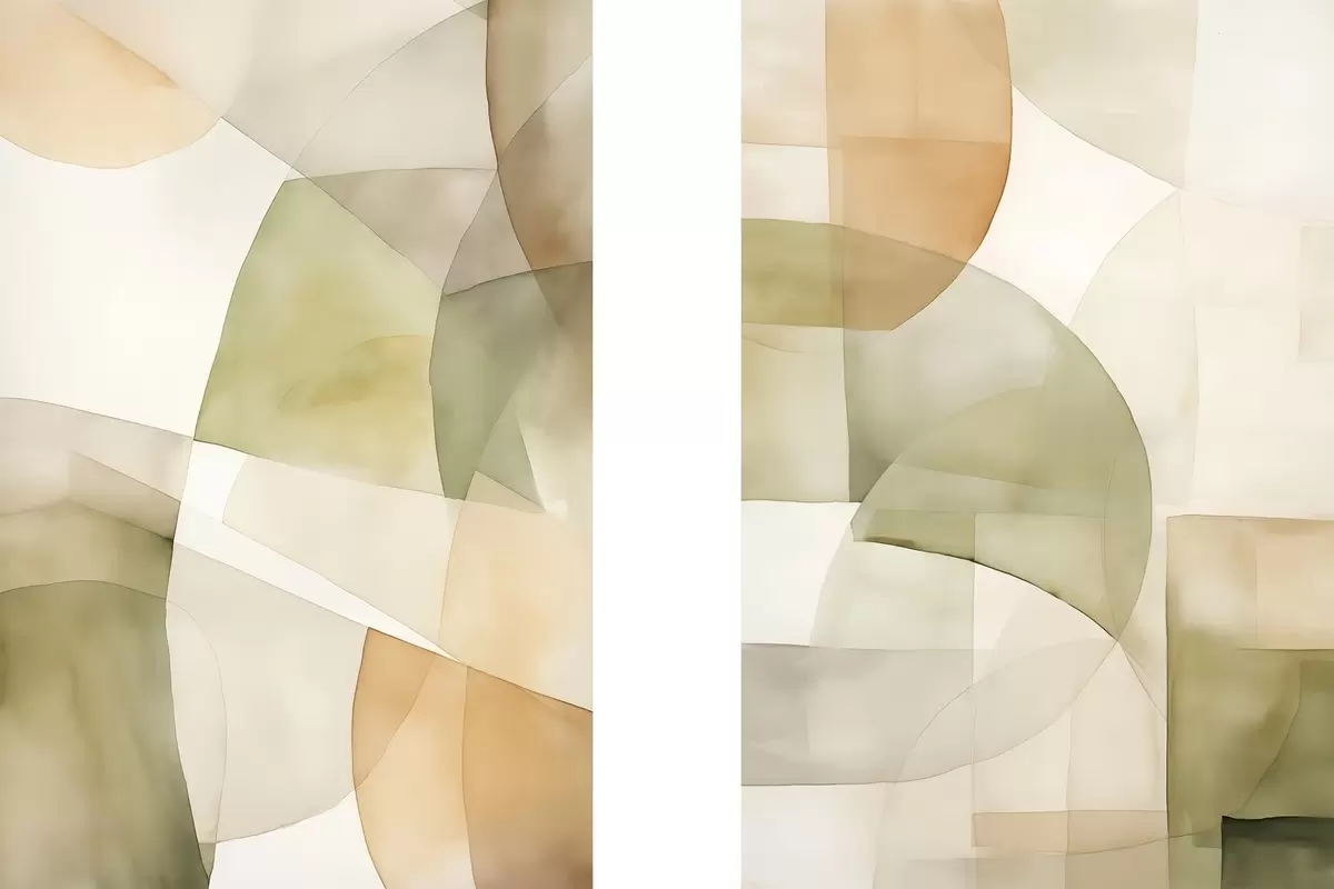 Paveikslas Abstrakčios akvarelės tekstūros geometrinės formos žalios, rudos ir smėlio spalvų atspalviais Nr m00820