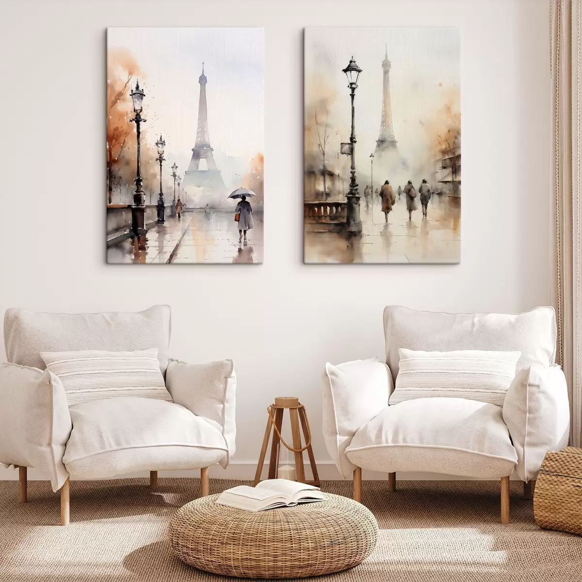 Paveikslas Lietinga rudens diena Paryžiuje su Eifelio bokštu fone ir senoviniais gatvių žibintais Nr m00821