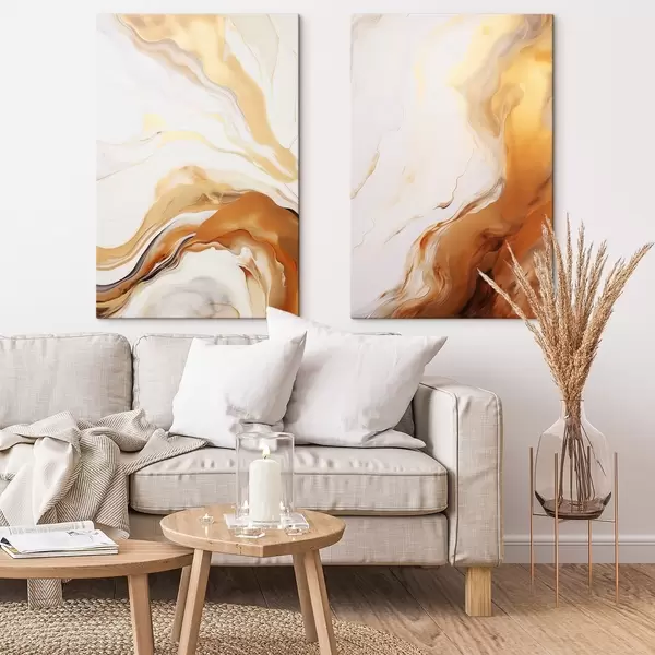 Paveikslas Abstraktaus tapybos imitacija balta ir oranžine spalvomis, sklandus menas su banguotomis linijomis, modernusis menas Nr m00825