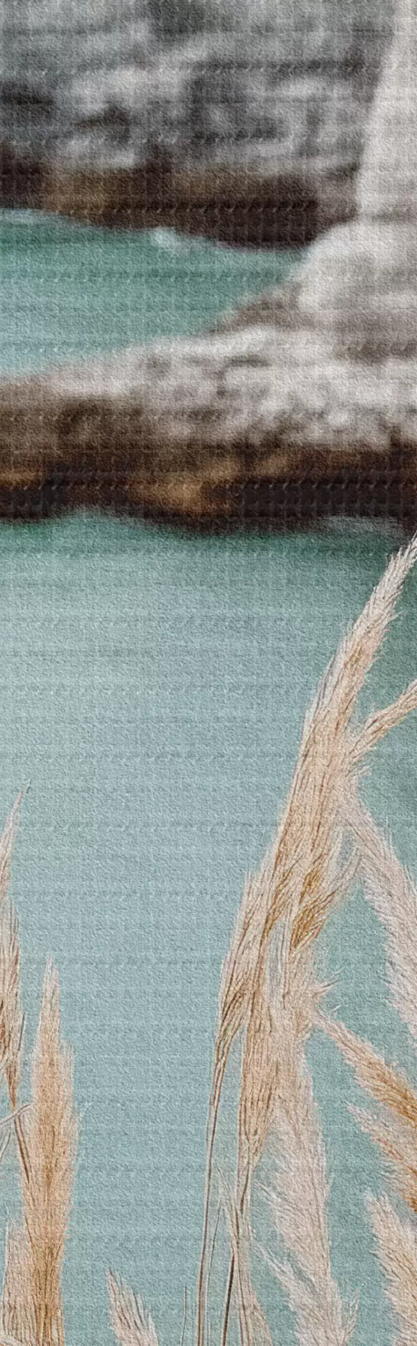 Paveikslas Pakrantės uolos ir sausa žolė prie turkio spalvos jūros Nr m00875