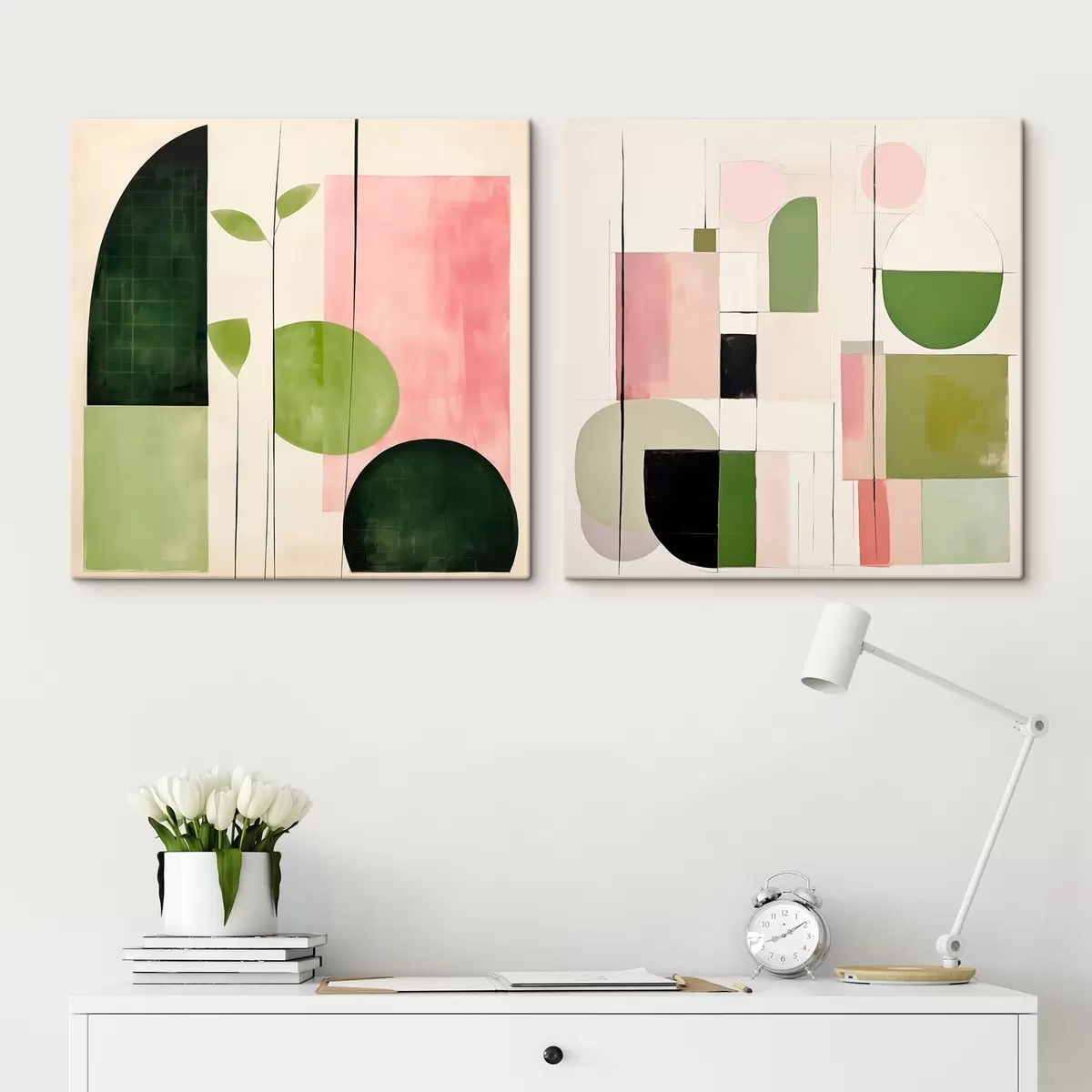 Paveikslas Minimalistinis diptikas su stilizuota flora ir geometrija Nr m00894