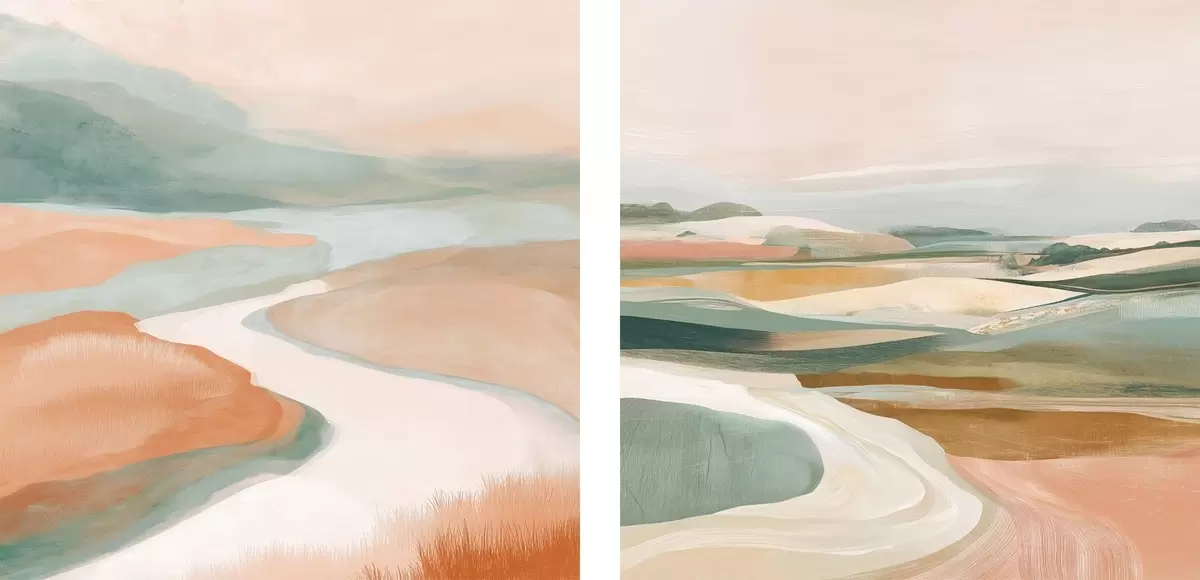 Paveikslas Abstrakčios kalvos ir upė pastelinių spalvų paletėje Nr m00896